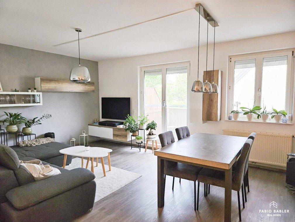 Die einladende Wohnung befindet sich im 1. Obergeschoss eines gepflegten Wohnhauses und wurde im Jahr 2016 umfassend renoviert. Besonders attraktiv ist der großzügige Wohn- und Essbereich, der mit einer modernen Klimaanlage ausgestattet ist und viel Platz für entspannte Stunden bietet. Von hier aus betritt man den gemütlichen Balkon, der einen schönen Blick ins Grüne eröffnet und zum Genießen der Abendsonne einlädt.