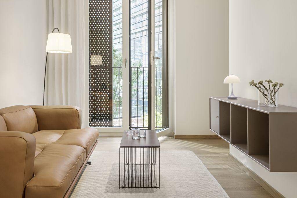 Die Wohnungen sind hochwertig, mit edlen Parkettböden, Tischlerküchen mit Miele-Geräten, bodentiefen Fenstern, Fußbodenheizung und Deckenkühlung ausgestattet.