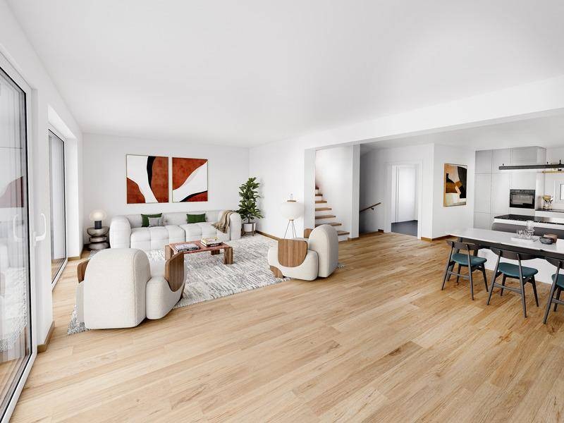 • Hochwertige Markenausstattung (Echtholzparkett, Innenstiege vom Tischler, Feinsteinzeug-Fliesen, Holz-Alu-Fenster mit 3-fach Isolierverglasung, uvm.)