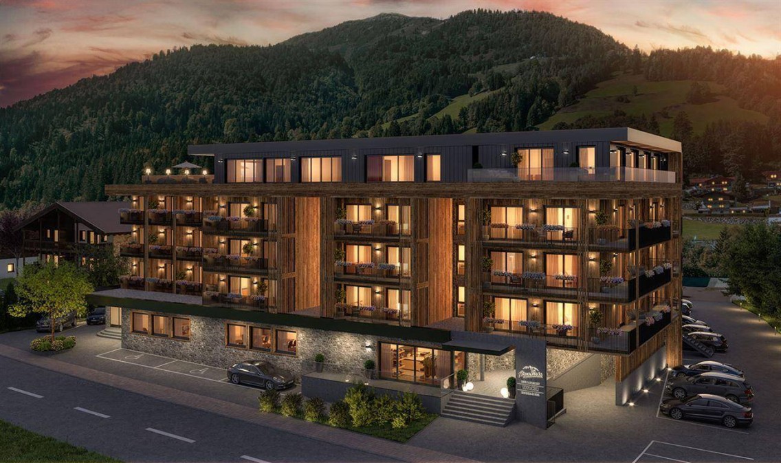 Das exklusive Ferienimmobilienprojekt AlpenParks Taxacher Hotel und Appartements in Kirchberg umfasst 50 luxuriöse Ferienappartements im modern alpinen Stil und wird von dem renommierten und erfahrenen Projekt-Entwickler und Betreiber AlpenParks gemeinsam mit dem bisherigen Eigentümer Simon Taxacher und der Hotelchefin Sandra Kobald gebaut und betrieben. Simon Taxacher ist als der Haubenkoch im Westen Österreichs bekannt. Sandra Kobald hat das bisherige 5-Sterne-Hotel Rosengarten geführt, welches die Basis für das Erweiterungskonzept bildet. Die Ferienappartements sind ca. 25 – 100 m² groß zzgl. Balkon/Terrasse und bieten einen atemberaubenden Blick auf die umliegende Kitzbüheler Bergwelt. Diese Ferienwohnung verfügt über ein kombiniertes Wohnzimmer mit Schlafmöglichkeit sowie eine offene Küche. Es handelt sich um ein absolutes Premium-Projekt mitten in den Kitzbüheler Alpen – eine der begehrtesten Urlaubsregionen Österreichs.