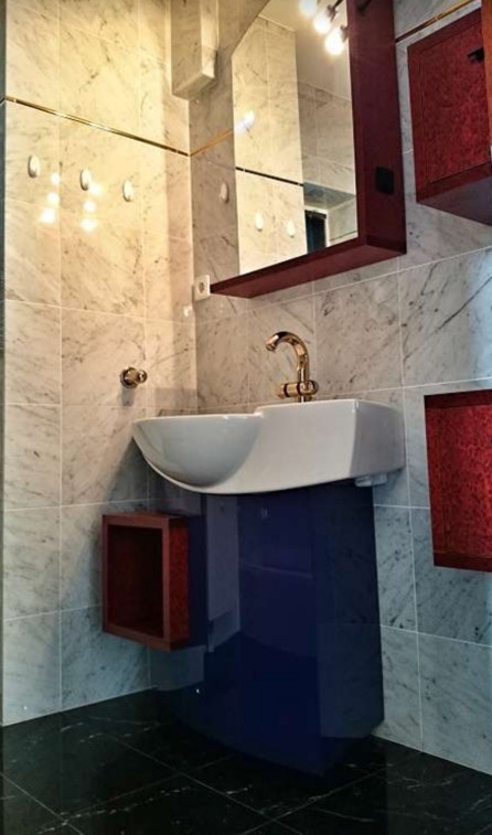 Bad und WC getrennt jeweils mit Fenster zum Öffnen. Feinster Carrara-Marmor über die volle Raumhöhe.