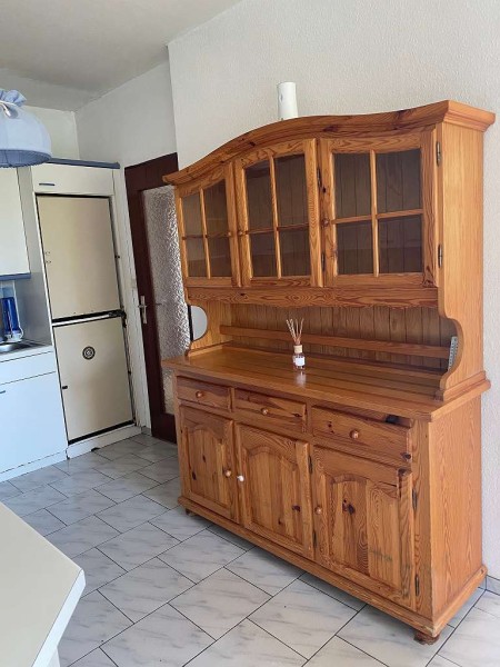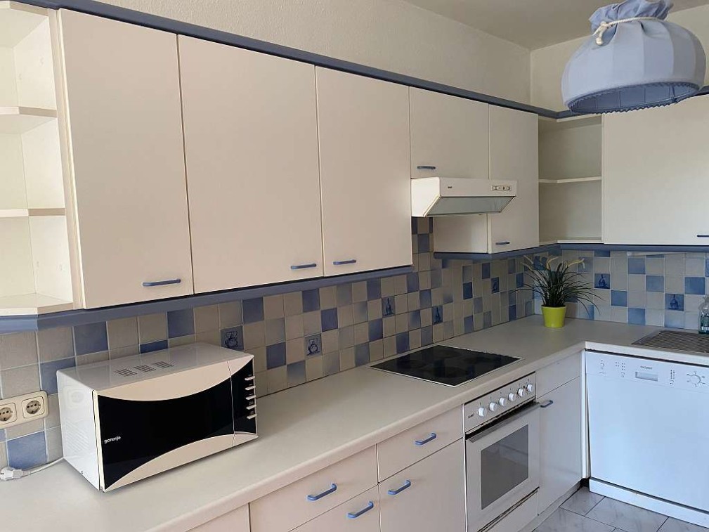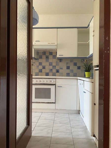 Die Kochnische ist möbliert, inklusive Elektrogeräten, allerdings schon älter. Über den Vorraum sind außerdem
