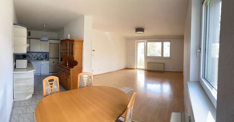 Die etwa 76 m² große, helle 2-Zimmer-Wohnung liegt im Erdgeschoß eines Mehrparteienhauses. Den Mittelpunkt bildet der geräumige Wohn- und Essbereich, über den auch die Loggia zugänglich ist. Genießen Sie hier dank der südwestlichen Ausrichtung ab der Mittagszeit bis in den Abend hinein sonnige und ruhige Stunden mit einem herrlichen Blick ins Grüne.