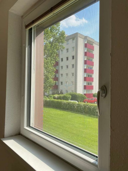 Alle Kunststoff-Fenster sind doppelt verglast und mit Innenjalousien ausgestattet. Zusätzlich verfügen die Fenster im Essbereich und im Zimmer über Fliegengitter.