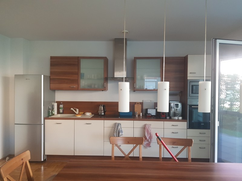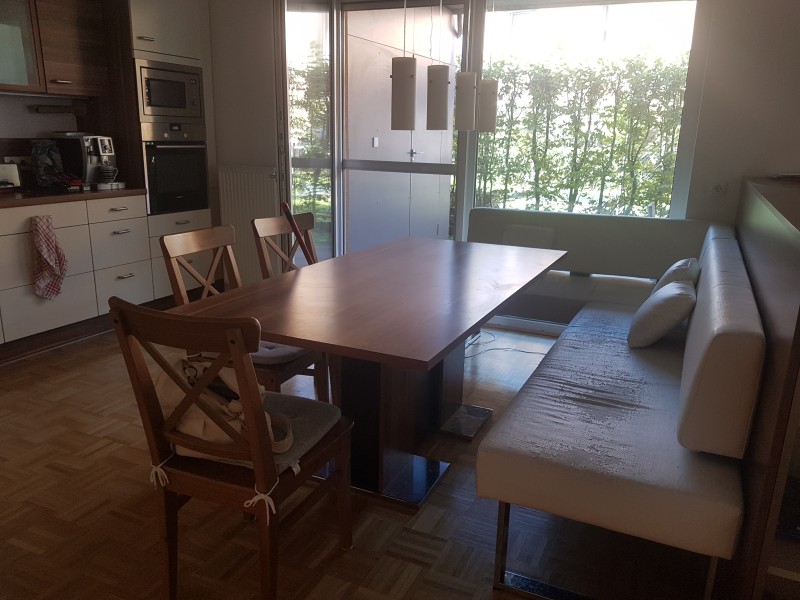 Bei Bedarf kann das gesamte Mobiliar (Einbauküche, Tischlerwohnzimmer, Schrankraum im Schlafzimmer)