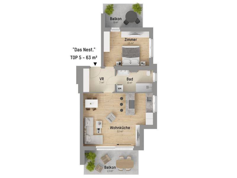 Vor den Toren der Lobau: 2-Zimmer, 63 m² und 2 Balkonen. Exklusivste Ausstattung inklusive