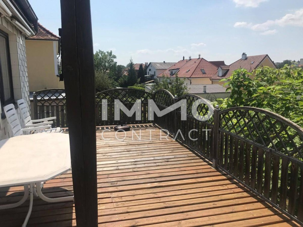 Vorraum, 4 Zimmer mit zentralem Kachelofen, riesige Terrasse mit herrlichem Ausblick.