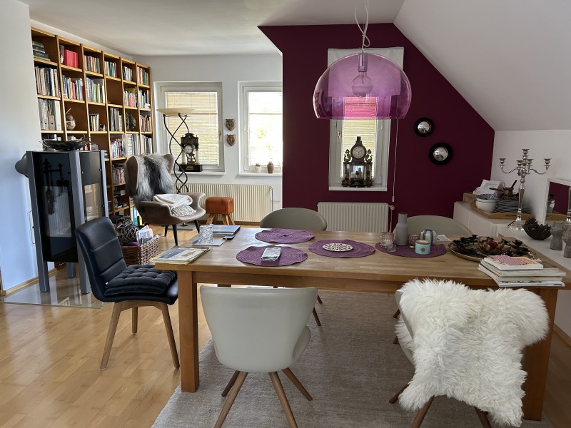 Gepflegte Maisonette, obere Etage:DAN Einbauküche,großes WZ mit s/W seitiger Terrasse.Parkettböden,WC.Untere Etage mit Schlafzimmer,Arbeitszimmer ,Balkon,begehbarer Garderobe,Badezimmer,WC.