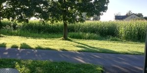 Veranda mit Grünfläche und Steckdose für E-Bike