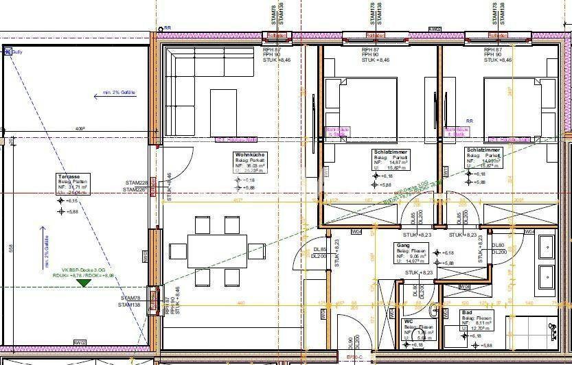 Bei der Wahl der Baustoffe wird besonders auf Hochwertigkeit geachtet, der Anspruch auf maximale Lebensqualität und minimalen Energieverbrauch wird bestmöglich erfüllt.