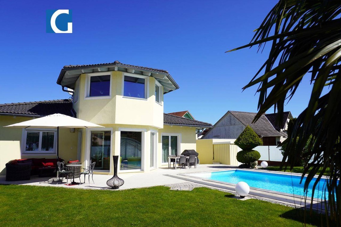 Außerdem gehört zum Einfamilienhaus, eine geräumige Garage mit Geräteraum. Vervollständigt wird dies durch eine gepflegte Poolanlage. Der Pool wird mittels einer Wärmepumpe (30 kW) beheizt und ist ganzjährig verwendbar.