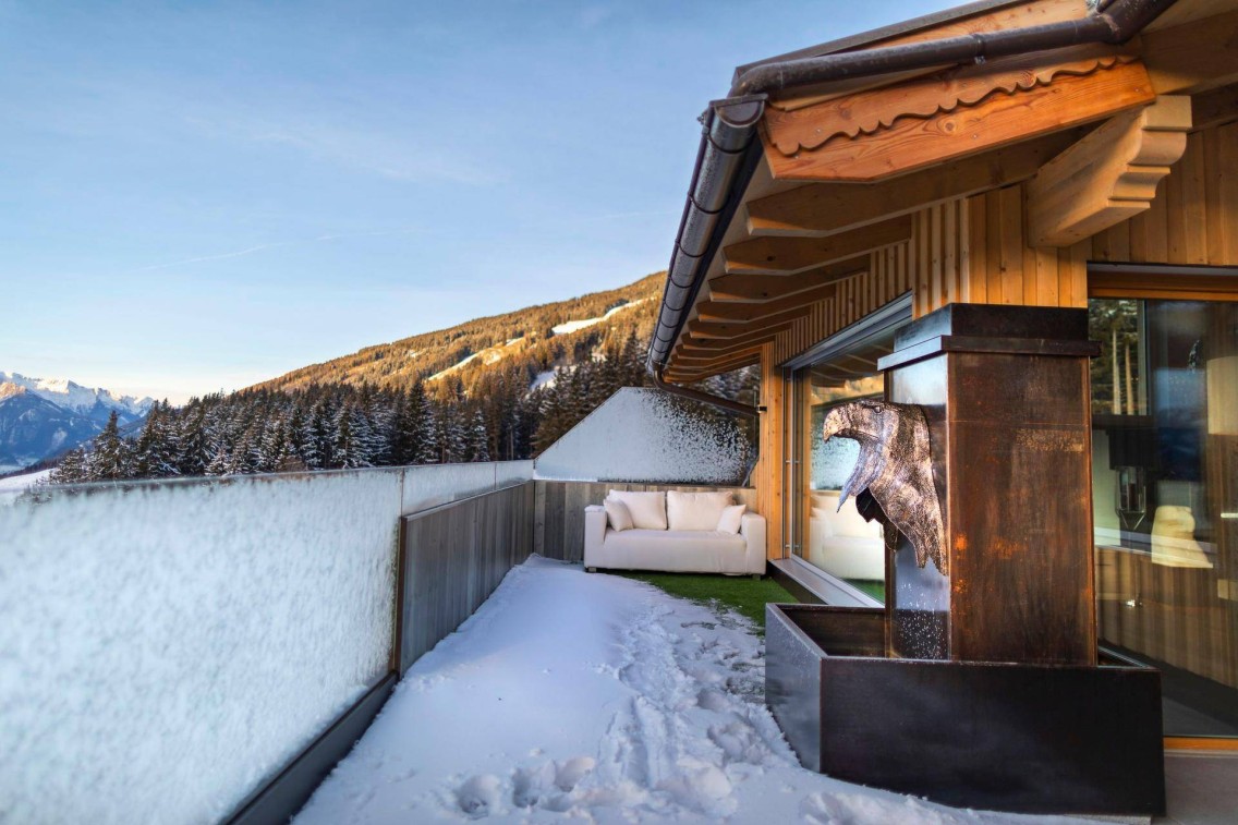 Das Penthouse Adler thront majestätisch über dem malerischen Ort Mittersill, rund 1200 Meter über dem Meeresspiegel, und bietet einen atemberaubenden Blick auf die kristallklare Bergwelt. Jedes Element im Penthouse Adler ist eine Ode an die heimische Flora und Fauna, dessen tiefe Verbundenheit mit der Natur in jeder Ecke spürbar ist. Die Inneneinrichtung reflektiert nicht nur ästhetische Schönheit, sondern auch eine tiefe Achtung vor der Umgebung – vom Esstisch, dessen Beleuchtung die majestätischen Tourengeher im Schnee nachahmt, bis hin zu den zahlreichen Kunstwerken, die die Räume zieren.
