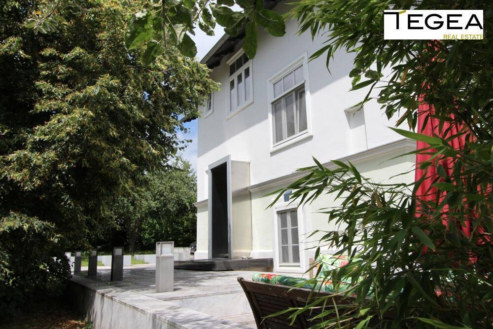 Die Seele der Villa spürt man auch im traumhaften Garten, der 2002 mit einem Pool ergänzt wurde. Hier befinden sich viele Obstbäume, wie Apfel-, Kirsch-, Marillenbaum und eine Blutpflaume, ebenso ein Lindenbaum, zwei Lärchen und Sträucher wie Flieder, Jasmin, Bambus und diverse Beeren.