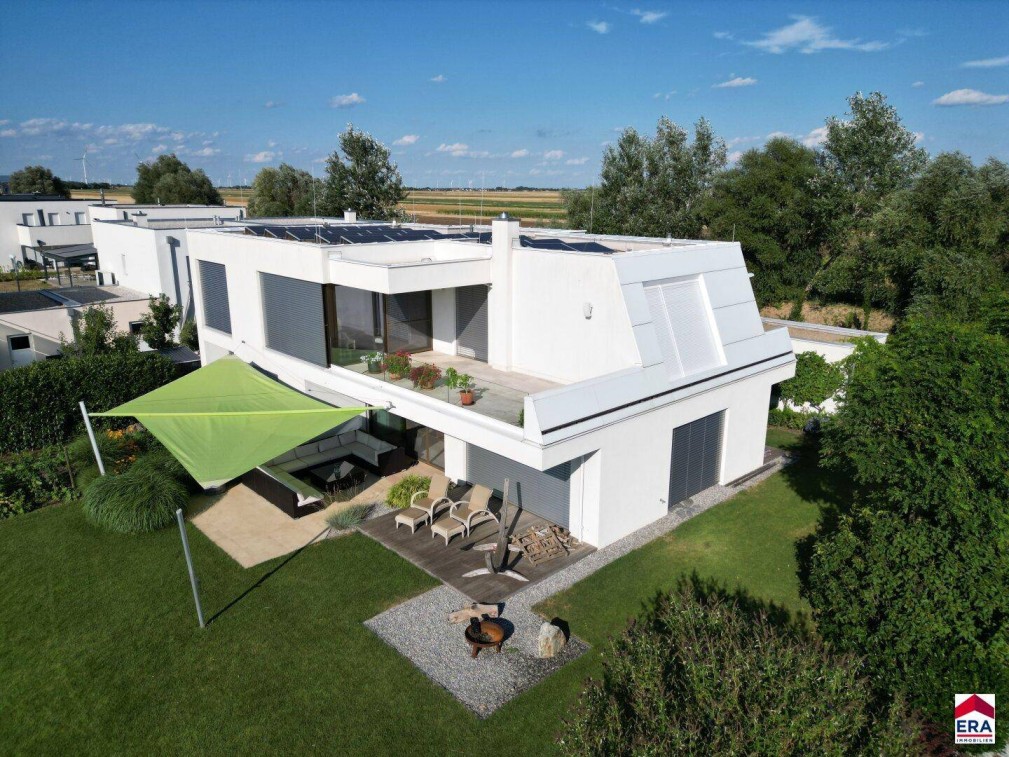 Die hier präsentierte Villa, welche im Jahr 2015 auf einem ca. 1.067 Quadratmeter großem Grundstück errichtet wurde, befindet sich in prominenter und ruhiger Lage in unmittelbarer Nachbarschaft zu Parndorf an einem See. Das Haus ist sehr hell und lichtdurchflutet, sodass sich sofort ein Wohlfühlfaktor bei den neuen Eigentümern einstellt. Im vorderen Teil des Grundstücks können Fahrzeuge bequem in der Garage oder auf einer befestigten Fläche geparkt werden.Die Villa unterteilt sich in insgesamt 2 Geschosse mit 6 Zimmern und 4 große und 3 kleine Terrassen sowie eine Doppelgarage mit Elektro-Ladestation für 2 E-Autos. Die bestehende Photovoltaikanlage kann gegen Aufpreis soweit adaptiert werden, dass das gesamte Haus bis zu 8 Monate energieautark betrieben werden kann.