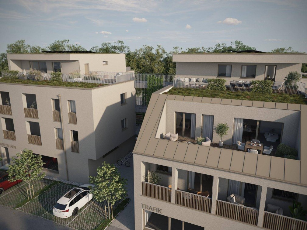 Neubau zweier Mehrfamilienhäuser mit 15 hochwertig ausgestatteten Eigentumswohnungen, sowie einer großzügigen Gastrofläche im Erdgeschoß und hauseigener Tiefgarage in Neuhofen