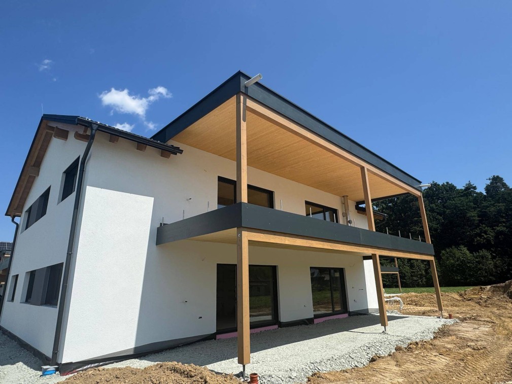Die Wohnungen im Erdgeschoß bieten eine ca. 21 m² große überdachte Terrasse mit Wasseranschluss und angrenzender Grünfläche.Im Dachgeschoß verfügen die Wohnungen über einen ca. 21 m² großen, überdachten Balkon.Der perfekte Platz um den Tag gemütlich ausklingen zu lassen.