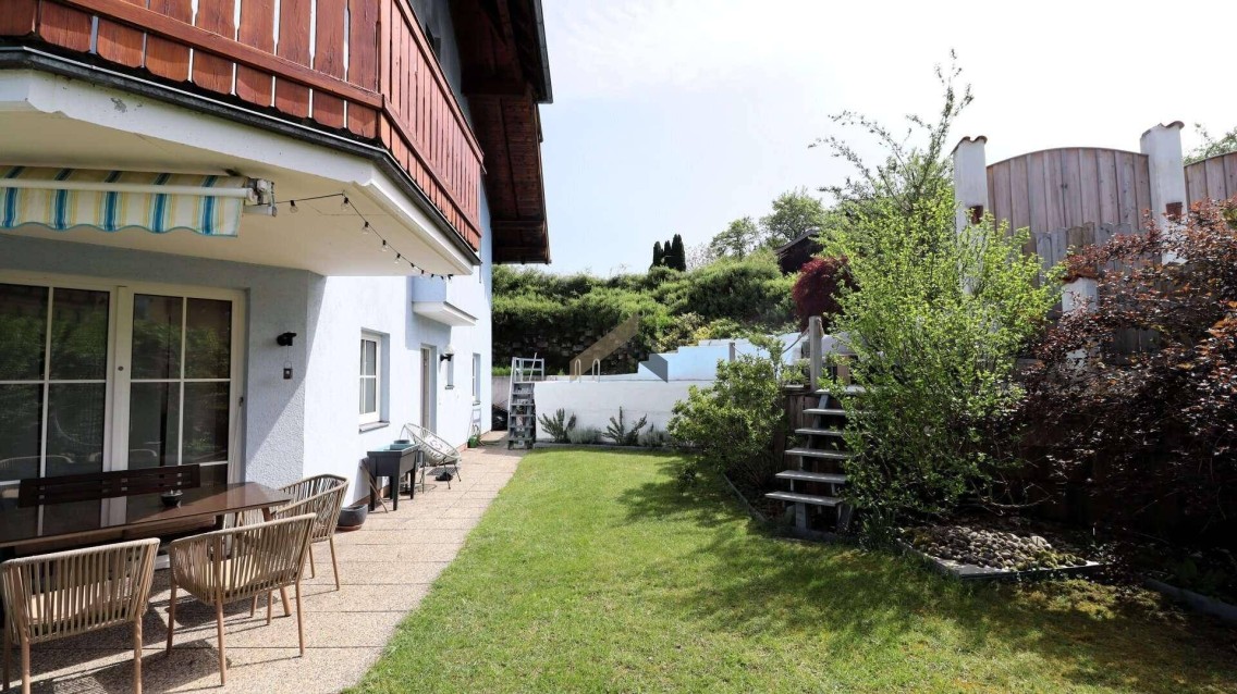 Durch die aufwendige Erhöhung des Grundstückes inkl. Hangstützung und kreativer Gartengestaltung haben Sie einen Sichtschutz nach allen Richtungen.