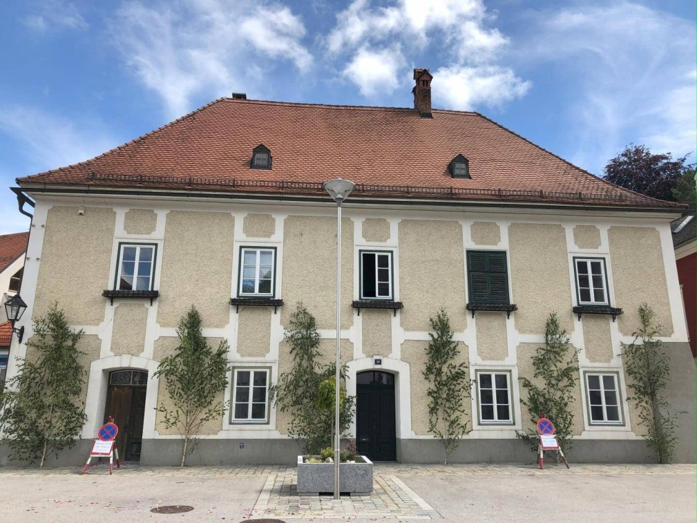 Errichtet als Verwaltungsgebäude (Rathaus) der Grundherrschaft Stift Seitenstetten, daher große Raumhöhen (ca. 3,6m). Erwähnt u.a. in Dehio: NÖ südlich der Donau, S. 2776: „Stattliches 2geschossiges Haus unter Walmdach im Kern 16. Jh.“