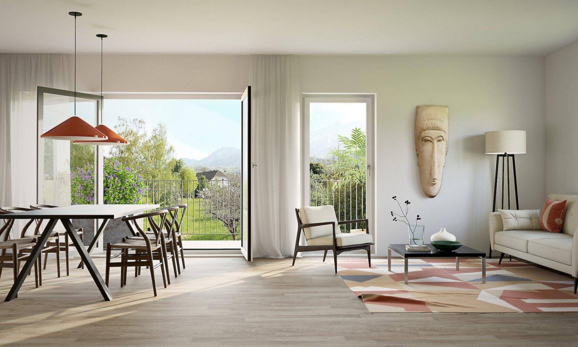 Natürliche Materialien, viel Tageslicht zum Wohnen mit einem traumhaften Ausblick bestätigen die Verbundenheit mit der Natur und Region.Der Neubau zeichnet sich durch sehr große Fenster, eine Pelletsheizung und additiv eine Photovoltaik- Anlage aus.Jede Wohnung ist entweder ebenerdig oder mittels Lift erreichbar. Ein überdachten KFZ- Abstellplatz ist zugeordnet, ferner verfügt die Anlage über einen Wasch/Trockenraum, Kinderwagenabstellraum und Fahrradraum.Ausgestattet mit großen Balkonen /Terrassen oder Eigengärten handelt es sich hier auch um ideale Ferienwohnungen bzw. Zweitwohnsitze.Verkehrsanbindung: über die A9 Phyrn Autobahn sind Sie in 30 Minuten in Wels und in 45 Minuten in Linz.