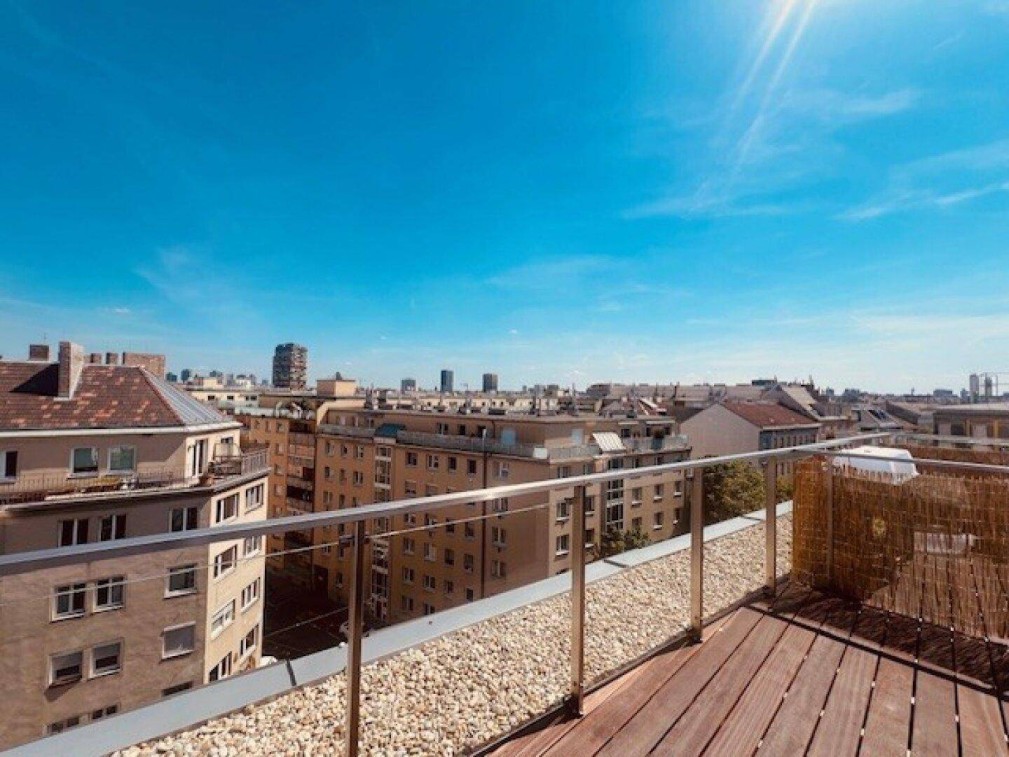 Die Wohnungen werden mit einer hochwertigen Ausstattung - Fußbodenheizung mit Luft-Wärme Pumpe (niedrige Energiekosten!), Alu-Kunststoff-Fenster mit 3fach-Verglasung, Holzdielen, Marken-Sanitärprodukte, innovativer Deckenkühlung, Video-Gegensprechanlage, uvm. schlüsselfertig ausgestattet.Die Dachgeschoßwohnungen sind mit Klima und elekritischer Aussenbeschattung zusätzlich ausgestattet. Für die Wohnungen in den Regelgeschossen sind die Rollkästen für die Aussenbeschattung in der Fassade und die Elektrik vorbereitet. Aussenjalousien können als Extrawunsch ausgeführt werden.14 Tiefgaragnplätze/ Duplex werden errichtet. Um Extrakosten von € 35.000 kann eine Garage erworben werden.Fertigstellung: Herbst 2024Perfekte öffentliche AnbindungStraßenbahnstationen der Linien 5, 31 und 33 in 2-3 Gehminuten zu erreichenU4 Friedensbrücke (2 Straßenbahnstationen mit 33er oder 5er)U6 Jägerstraße (1Straßenbahnstation mit 33er)Mit dem 31er direkt zum Schottenring (U4) - 5 Stationen7 Minuten zu Fuß zum AugartenAuf zahlreichen Radwegen sind Sie rasch überall hin unterwegsWir weisen darauf hin, dass zum Verkäufer aufgrund einer regelmäßigen Beauftragung mit Vermittlungsgeschäften ein wirtschaftliches Naheverhältnis besteht.Top 36A - Elegante Dachterrassenwohnung + Garagenplatz gratis dabei!großzügig und elegant präsentiert sich diese Dachwohnung im 2.DG - wunderschöne Wohnküche mit rd. 36m², viele Fensterflächen und Ausgang auf eine rd. 7,60m² Terrasse. Vom Vorraum gelangt man über eine Stiege auf die rd. 23m² Dachterrasse mit Fernblick. Viele Freiflächen zum Entspannen, Grillen und Sonnenbaden in der warmen Jahreszeit.Die Wohnfläche befindet sich auf einer Ebene und verfügt die Wohnung über ein großzügiges rd. 25m² Schlafzimmer mit ensuite-Badezimmer mit Fenster, ein 2.Schlafzimmer mit eigenem Dusch/WC, einem hellen Vorraum mit Verglasung, sowie einen Abstellraum und ein separates WC mit Handwaschbecken.Elegant ganz oben residieren und die Sonne genießen!Der Anlegerpreis beträgt netto € 883.752 zzgl. 20% Ust.AKTION: Jetzt ein Garagenplatz gratis dabei!Wir weisen darauf hin, dass zwischen dem Vermittler und dem zu vermittelnden Dritten ein familiäres oder wirtschaftliches Naheverhältnis besteht.Der Vermittler ist als Doppelmakler tätig.