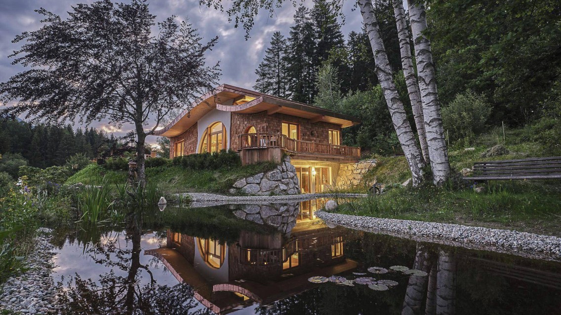 Das Haus selbst wurde 2017 auf einem energetisch positivem Platz am Waldrand in unmittelbarer Nähe des Schwarzsees errichtet und besticht durch die voll-ökologische Bauweise. Schon von außen erkennt man die etwas "andere" Bauform, die geschwungenen Linien geben dem Objekt nicht nur ein besonderes Aussehen, sondern haben darüber hinaus auf die Bewohner eine harmonisierende Wirkung.
