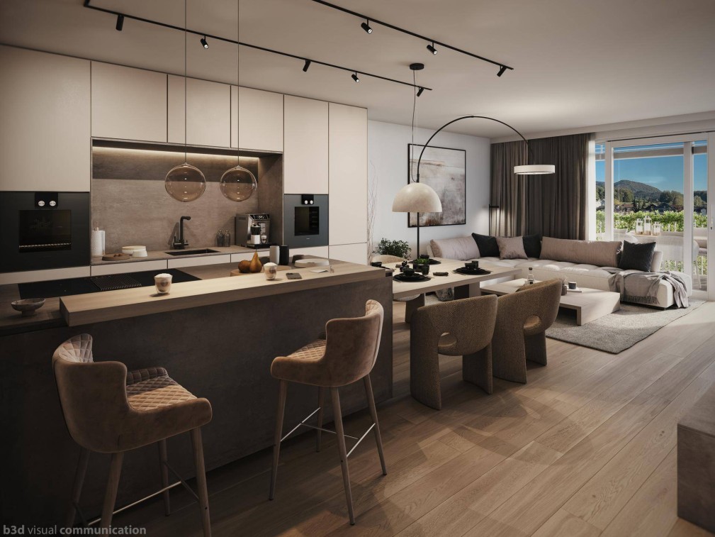 Der Vorraum bietet Platz für eine Garderobe, anschließend gelangt man in den perfekt geschnittenen Wohn-/Essbereich mit über 33 m². Die großen Fensterfronten lassen den Raum hell wirken und laden zum Kochen, Entspannen und gemütlichem Beisammensein ein. Der Ausgang auf den 23,62 m² großen Balkon ist selbstverständlich gegeben.