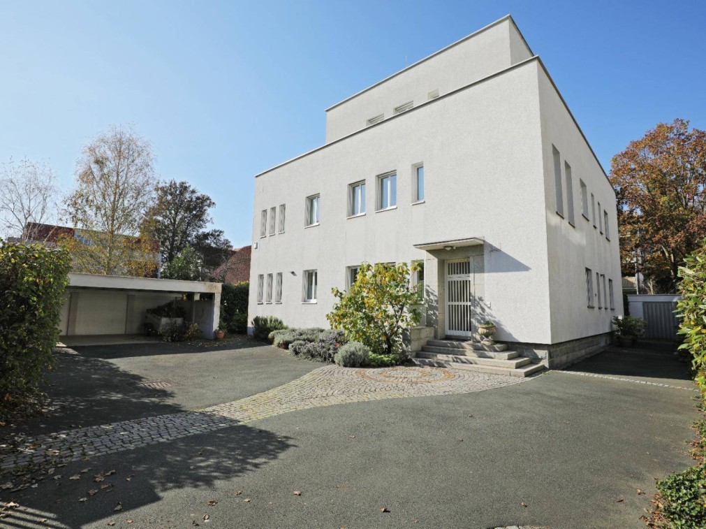 Auf einer Grundstücksfläche von ca. 866 m² befindet sich der 3-geschossige kubische Bau mit einer Bruttogeschossfläche von ca. 189 m² im EG, ca. 189 m² im 1. OG und ca. 114 m² im 2. OG. Das Gebäude ist voll unterkellert.
