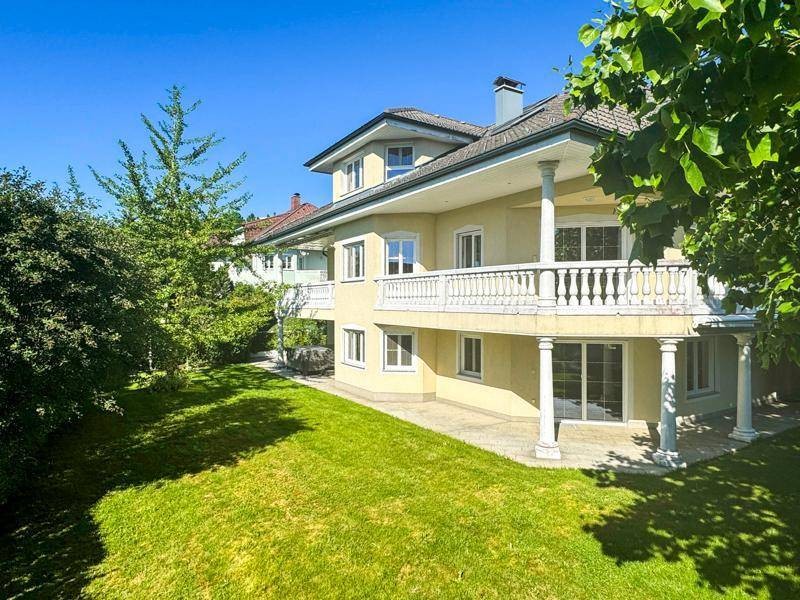 Weiterhin gibt es ein separates WC, eine geräumige Küche mit angrenzender Speis mit Zugang zu einem Balkon, sowie das Ess- und ein Wohnzimmer mit direktem Zugang auf den Westbalkon und den Garten. Das Obergeschoss bietet mit bis zu fünf unterschiedlich großen (Schlaf-)Zimmern und einem weiteren Bad ausreichend Platz für eine große Familie. Die großzügigen Dachfenster mit Außen-Rollläden sind elektrisch bedienbar und sorgen für optimale Lichtverhältnisse. Das Untergeschoss ist über einen eigenen Eingang zugänglich und bietet ideale Voraussetzungen für ein Home-Office oder eine Praxis. Eine Garderobe führt in den großzügigen Entree- oder Anmeldebereich mit WC. Über das große Arbeitszimmer mit Kamin geht’s auf die untere Terrasse in den Garten. Im Anschluss liegen ein weiterer Raum und eine Wasch- oder Teeküche, auch hier mit Zugang auf die blickgeschützte Terrasse mit einem Hotspring-Whirlpool.