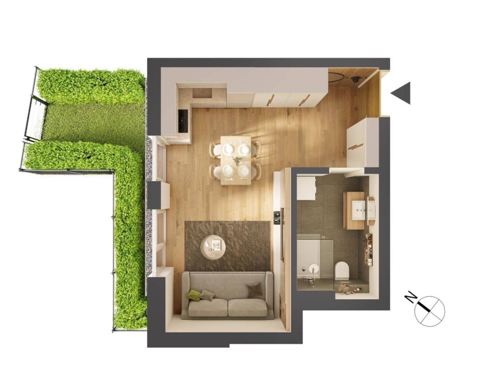Hochwertige 1-Zimmer Neubau-Gartenwohnung HW08