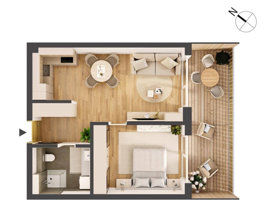 + 1- bis 4-Zimmer-Wohnungen mit kompakten Grundrissen
