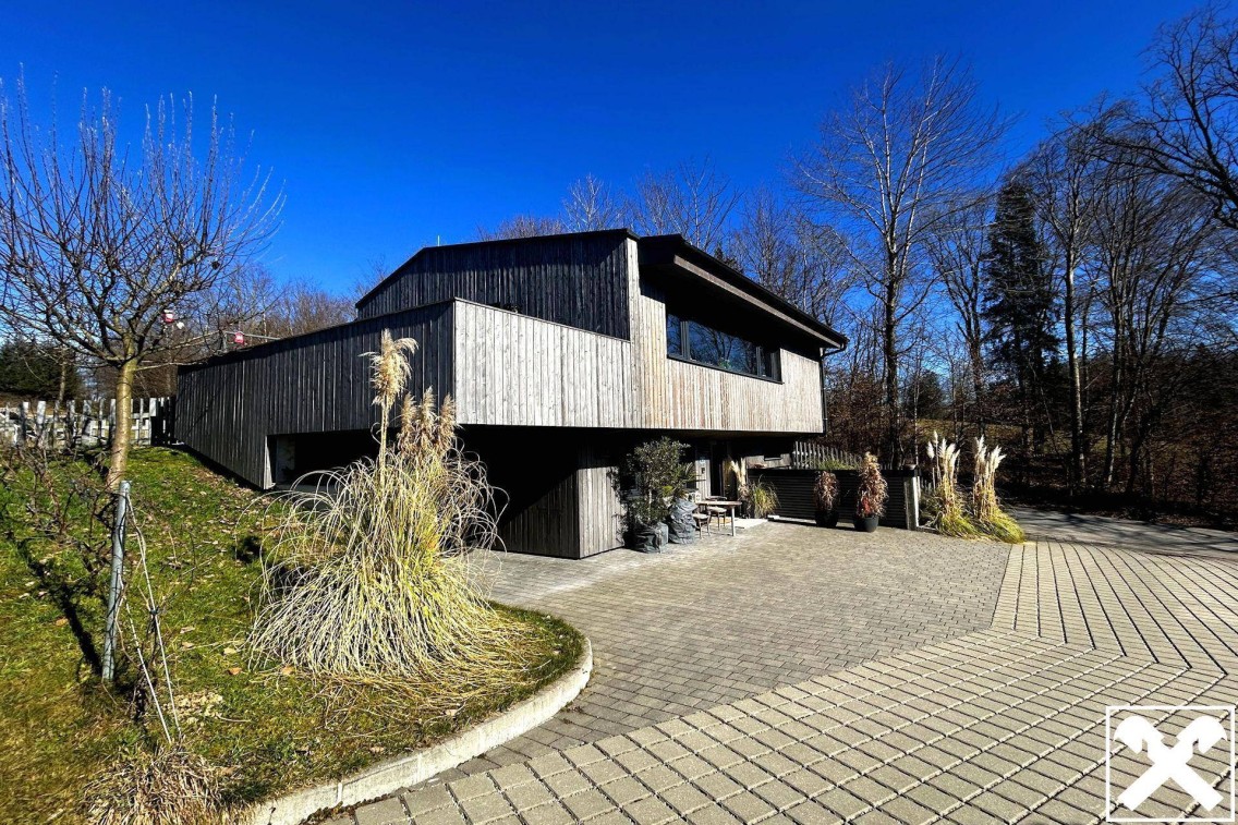 Modernes Haus mit Traumaussicht in Elixhausen!Das kompakte Einfamilienhaus liegt in einer kleinen Siedlung in Elixhausen und bietet ein stilvolles Zuhause mit wunderschöner Aussicht und guter Anbindung.Mit einem außergewöhnlichen Look ist das Haus nicht nur ein gemütliches Zuhause, sondern auch ein absoluter Hingucker. Auf ca. 94 m² Wohnfläche zzgl. Garten und Carport ist es ein einzigartiges und energieeffizientes Eigenheim.Im unteren Geschoss befindet sich der Eingang des Hauses, der in das Stiegenhaus führt. Hier gelangt man in das Büro, das Gäste-WC und den Hauswirtschafts- und Technikraum. Im Obergeschoss genießt man einen herrlichen Ausblick von jedem Raum. Der offene Wohnbereich mit Küche und Essecke führt hinaus auf die Terrasse und in den Garten. In diesem Stockwerk befindet sich auch das Schlafzimmer mit en-Suite Badezimmer.Zusätzlichen Stauraum gibt es im Abstellraum hinter dem Carport.Das Haus befindet sich im Baurecht - das bedeutet, dass das Grundstück, auf dem es steht, nicht mit erworben wird. Für die Nutzung des Grundstückes wird monatlich ein Baurechtszins an den Grundstückseigentümer gezahlt. Genauere Infos diesbezüglich können Sie unserem Exposé entnehmen.Der monatliche Baurechtszins, der zusätzlich zu den laufenden Kosten für Betriebskosten etc. entrichtet wird, beläuft sich derzeit auf € 540,68.Wir verweise auf unsere Funktion als Doppelmakler und das wirtschaftliche Naheverhältnis zum Abgeber.