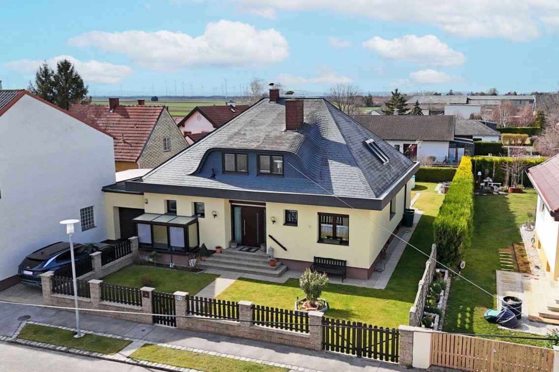 Diese äußerst gepflegte und hervorragend in Stand gehaltene Liegenschaft liegt im südlichen Weinviertel zwischen dem Hochleithenwald und der Marchfeld-Ebene, in ruhiger Siedlungslage am südöstlichen Ortsende der Marktgemeinde Bockfließ.Die nächste Haltestelle ist 250 Meter entfernt und bietet regelmäßige Busverbindungen zu den Bahnhöfen Deutsch Wagram bzw. Gänserndorf, von wo man mit der Schnellbahnlinie S1 in etwa einer Dreiviertelstunde den Wiener Praterstern erreicht.In Bockfließ selbst gibt es Kindergarten und Volksschule, verschiedene Ärzte und Therapeuten, eine gute Mischung aus Handwerks- und Gewerbebetrieben sowie einige Weinbauern und Imker, die ihre regionalen Produkte beim Heurigen oder im Ab-Hof-Verkauf anbieten. Für den täglichen Einkauf stehen Spar und Adeg auf der Hauptstraße zur Verfügung. Weiterführende Schulen findet man mit der NMS im benachbarten Auersthal bzw. höhere Schulen in Deutsch Wagram und Gänserndorf.Der Golf-Club Bockfließ mit 18 Loch-Anlage liegt etwa 5 km südlich, das medizinische Zentrum Gänserndorf 12 km östlich und das Krankenhaus Mistelbach erreicht man mit dem Auto in einer halben Stunde.Das voll unterkellerte Einfamilienhaus wurde im Jahre 1980 in Ziegelmassivbauweise errichtet, im Jahre 2006 erfolgte durch die neuen Eigentümer der Ausbau des Dachgeschoßes. Das Haus bietet nun 211 m² Wohnfläche, die sich auf Erd- und Dachgeschoß verteilen.Im Erdgeschoß stehen den zukünftigen Bewohnern Vorraum mit Garderobe, Küche mit Essplatz, das Wohnzimmer mit Ausgang in den Wintergarten, zwei weitere Zimmer sowie Bad und separates WC zur Verfügung. Vom Wintergarten gelangt man direkt hinaus in den gepflegten Garten mit Sitzplatz und Grillkamin.Das Dachgeschoß unterteilt sich in Vorraum, zwei großzügige Zimmer, eines davon mit Zugang zu einem Abstellraum, und ein Badezimmer mit Wanne, Waschtisch und WC. Die Zimmer sind mit Velux Dachflächenfenstern mit Markise und Insektenschutzgittern sowie Klima-Splitgeräten ausgestattet.Im Kellergeschoß erschließt ein Vorraum verschiedene Lagerräume, die Waschküche und den Heizraum mit Öllager. In einem der Räume gibt es eine Sauna der Firma Karibu.Im Zuge der Montage der neuen Zentralheizung mit Wolf Brennwertkessel und einem 155 Liter Wolf Edelstahl-Warmwasserbereiter wurde auch der Kamin saniert. Gleichzeitig mit dem Einbau des neuen Bades im Dachgeschoß wurde das Bad im Erdgeschoß renoviert und mit neuen Möbeln versehen. Im Jahre 2008 wurde eine Solaranlage mit drei Paneelen am Süddach als Unterstützung für die Warmwasserbereitung installiert. Die 2-fach verglasten Kunststofffenster sind mit elektrisch bedienbaren Außenjalousien ausgestattet.Der Vermittler ist als Doppelmakler tätig.