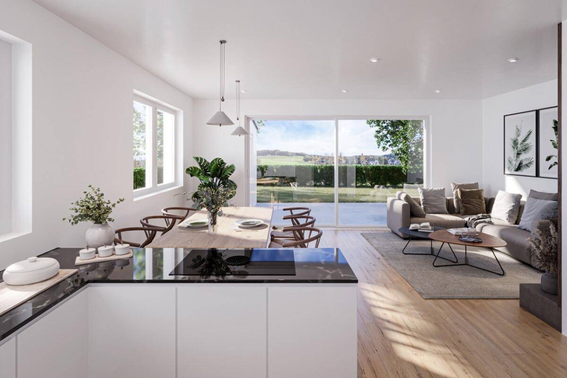 Jedes Haus bietet rund 100 m² Wohnfläche und beeindruckt mit großzügigen Fensterfronten, die den Blick ins Grüne freigeben. Die unverbaute Lage am Grünland macht dieses Projekt besonders: Lauschen Sie dem sanften Plätschern des Bachs, beobachten Sie die Kühe auf den Wiesen und genießen Sie ein Wohngefühl, das Ruhe, Komfort und Natur vereint.