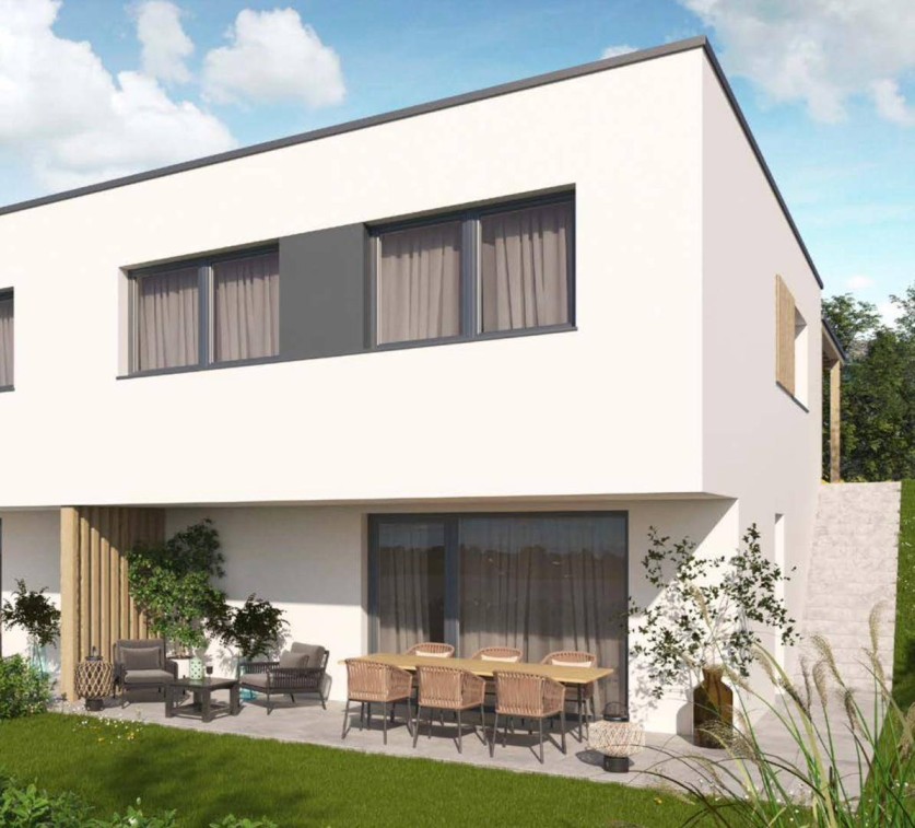 Die Reihenhäuser sind mit hochwertigen Materialien und modernen Annehmlichkeiten ausgestattet. Große Fensterflächen sorgen für viel Tageslicht und schaffen eine offene, luftige Atmosphäre.