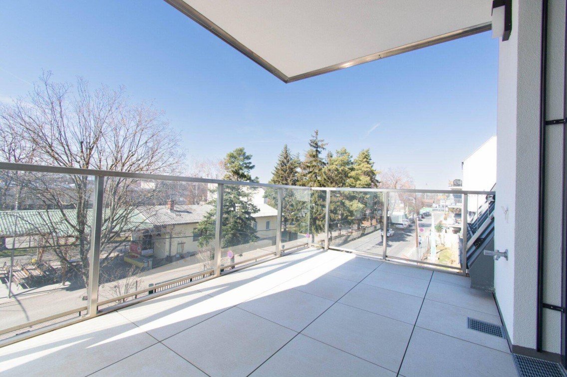 Diese ideal geschnittene 3-Zimmer-Wohnung befindet sich im 2. Liftstock eines modernen Neubaus (Erstbezug) und beeindruckt nicht nur durch moderne Architektur und hochwertige Ausstattung, sondern bietet zudem einen äußerst gelungenen Grundriss.Alle Räume der Wohnung sind vom Vorraum zentral begehbar. Die praktische Nische im Eingangsbereich kann gut genutzt werden - zum Bespiel Einbauschrank oder Garderobe.Die fast 32 m² große Wohnküche ist westlich ausgerichtet, von hier aus ist auch der sonnige Balkon erreichbar.Die beiden Schlafzimmer sind ein absoluter Hit für eine WG (oder natürlich auch für eine Familie), denn Sie bieten jeweils ein eigenes Bad en Suite(!) und sind gentrennt begehbar.Das erste Schlafzimmer, mit ca. 15,5 m², verfügt nicht nur über ein Bad mit Wanne, Doppelwaschbecken und Toilette, sondern auch einen Zugang auf die Loggia, die auch über den Vorraum erreichbar ist.Im zweiten Schlafzimmer mit einem Ausmaß von rund 19,5 m² findet sich zusätzlich zum Badezimmer, mit Walk-in Dusche und Doppelwaschbecken, Platz für einen großen Kleiderschrank.Die separate Gäste-Toilette ist mit einem Handwaschbecken ausgestattet. Für extra Stauraum sorgt der Wirtschaftsraum mit Waschmaschinenanschluss und das über 7 m² große Kellerabteil, das im Angebot inkludiert ist. Garagenplätze können bei Bedarf separat erworben werden.Ausstattung:Heiz- und Kühlsystem mit WärmepumpeEinzeln regulierbare Fußbodenheizung in allen Zimmern inkl. BadezimmerDeckenkühlung Echtholzparkett Terrassenverfliesung mit NatursteinNurglas-Geländer mit Sicherheitsglas und Außenwasseranschluss auf der TerrasseEinbruchshemmende Wohnungseingangstür der Klasse WK3Holz-Alu-Fenster und Terrassentüren mit 3-fach Isolierverglasung Elektrische Raffstores mit FunkfernbedienungSanitärausstattung & Armaturen von der Marke Villeroy & Boch und HansgroheGroßzügiger Duschbereich mit bodenebener Dusche Photovoltaik-Anlage am Dach zur teilweisen Energiegewinnung für AllgemeinbereicheLiftKellerabteilWir weisen darauf hin, dass zwischen dem Vermittler und dem zu vermittelnden Dritten ein familiäres oder wirtschaftliches Naheverhältnis besteht.