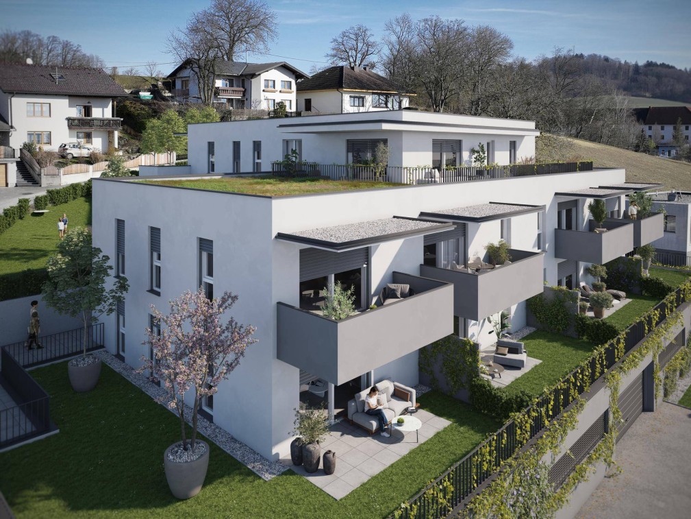 Singlewohnung bis zur geräumigen Familienwohnung. Alle Wohneinheiten sind mit großzügigen Terrassen oder Balkonen ausgestattet. Als weiterer Pluspunkt können die Eigengärten erwähnt werden, über welche manche der Wohnungen verfügen!