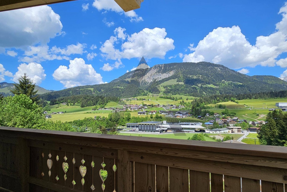 Von den großzügigen Terrassen bietet sich ein wunderschöner Blick auf die Tiroler Bergwelt.