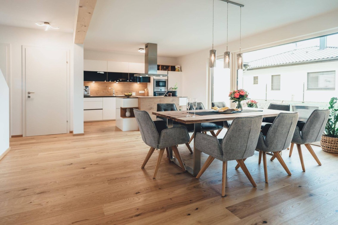 Nutzen Sie die Möglichkeit Ihre Wünsche in Ihr zukünftiges Zuhause einfließen zu lassen. Die Raumaufteilung kann in Absprache gerne noch adaptiert werden, so lässt sich beispielsweise ein 2. Badezimmer im EG oder eine Ankleide im Obergeschoss verwirklichen. Alternativ kann auch ein Home-Office-Arbeitsplatz vorgesehen werden. Die Bemusterung von Parkettboden und Fliesen sowie die Elektroplanung erfolgen gemeinsam mit dem Käufer und unseren heimischen ausführenden Unternehmen.