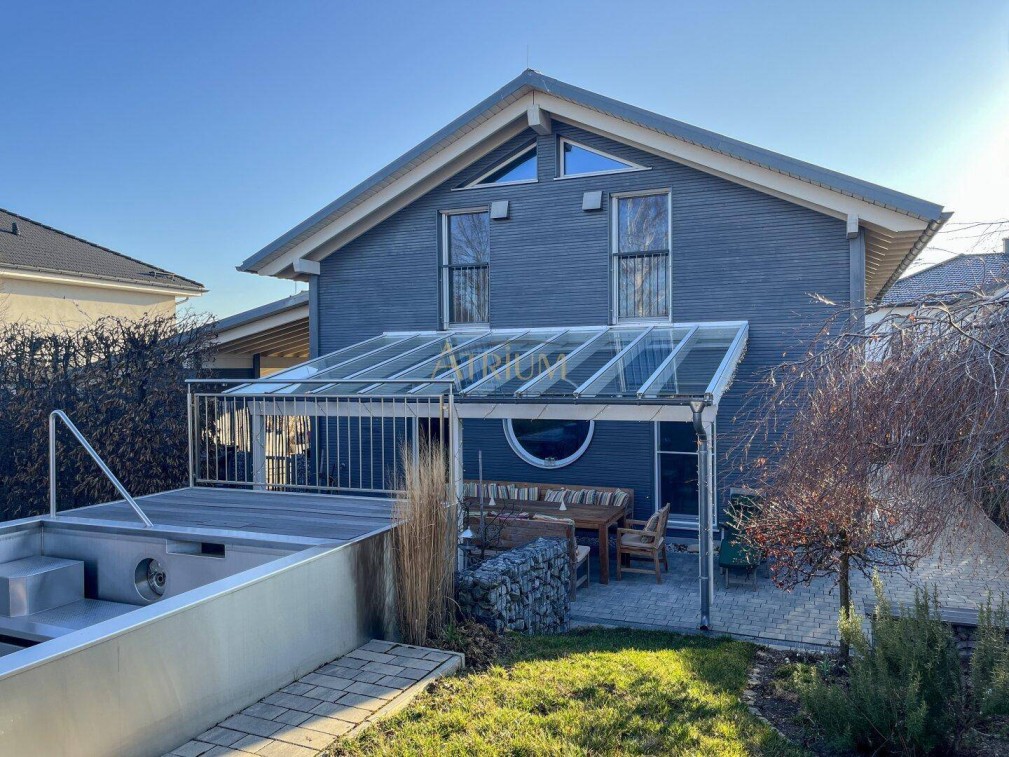 Diese Liegenschaft bietet auf 733 m² Grundfläche und einer Wohnfläche von rund 140 m² ein modernes, energieeffizientes Zuhause, errichtet von der renommierten deutschen Firma Bau-Fritz. Das 2008 erbaute Haus überzeugt durch durchdachte Raumaufteilung, hochwertige Materialien, eine nachhaltige Bauweise und großzügige Gartenflächen. Des Weiteren zählt ein großer außenliegender Edelstahl-Pool zur Ausstattung mit regulierbarer Gegenstromanlage und Schwalldusche - natürlich chlorfrei. Überzeugen Sie sich selbst von diesem besonderen Eigenheim:Auf einen Blick:Grundstücksfläche: 733 m²Wohnfläche: ca. 140 m²Nutzfläche Keller: ca. 70 m²Bauweise: Holzriegelbauweise (Bau-Fritz), Niedrigenergiehaus, Dichtbetonkeller (AquaSafe)Baujahr: 2008Zustand: gepflegt, jährlich regelmäßig gewartet vom Erbauer (Bau-Fritz)Widmung: BW – Bauland WohngebietParkplätze: 2 Stellplätze im großen Carport, zusätzlich E-Ladestation mit 11 kW, Platz für bis zu 4 KFZ am GrundstückHeizung: Solarthermie und Brennwert-Gastherme, Kamin, beheizter Pool mit Wärmepumpe, automatische Raumlüftung; Heizung bereits für Einbau einer Wärmepumpe vorbereitet (Verrohrungen vorhanden)Extras: Edelstahlpool, 2 Gartenhäuser, Glasdach-Terrasse mit Beschattung, Smart-Home-Vorbereitung, NetzwerkverkabelungDer Keller (Dichtbeton, trocken):Technikraum mit 14 m²: BWT Weichwasseranlage, Haustechnik, Gastherme, WaschraumLagerraum mit 41,5 m²: viel StauraumBügel-/Lagerraum mit 17 m²Alle Kellerräume mit Tageslicht (Fenster)Erdgeschoss (ca. 70 m²):Eingangsbereich/Vorraum ca. 10 m²Gäste-WC mit DuscheBüro/Gästezimmer mit großen Fensterflächen und GrünblickOffener Wohn- und Essbereich mit freistehender Kücheninsel (Siemens-Geräte, Induktionsherd)Übergang auf die überdachte Terrasse und in den großzügigen GartenObergeschoss:Zwei Schlafzimmer à 17 m² mit Blick ins Grüne und MorgensonneDrittes Schlafzimmer mit begehbarem Kleiderschrank (gesamt ca. 21 m²) – ideal als KinderzimmerGroßzügiges Badezimmer (13 m²) mit Regendusche, Wanne, Doppelwaschtisch, WC – Abendsonne inklusiveGarten und Außenbereich:Ca. 400 m² Gartenfläche mit Beerensträuchern, Bäumen und viel GrünZwei Gartenhäuser – eines als Stauraum, eines als Rückzugsort für laue SommerabendeEdelstahlpool (8 m²), beheizbar über Wärmepumpe, chlorfrei (Aktiv-Sauerstoff-System und UV-Entkeimung), Gegenstromanlage und SchwallduscheGroße, überdachte Terrasse mit Glasdach und BeschattungEingangsbereich mit Carport und zusätzlichem AbstellraumAusstattung:Hochwertige Parkett- und NatursteinbödenKaltdachkonstruktionEnergieklasse BAutomatische RaumlüftungSolarthermie am Dach für WarmwasseraufbereitungSmart Home-VorbereitungGlasfaser/LAN sowie WLAN in allen RäumenInfrastruktur und Verkehrsanbindung:Bahnhof Gramatneusiedl sowie Himberg (S-Bahn) in wenigen Minuten erreichbarNahversorgung durch örtlichen Greißler gegebenKindergerechte Infrastruktur mit Krabbelstube, Kindergarten und Volksschule im OrtRuhige Lage in einer gewachsenen WohnsiedlungNoch nichts gefunden? Wir informieren Sie über geeignete Immobilienangebote noch vor allen anderen.