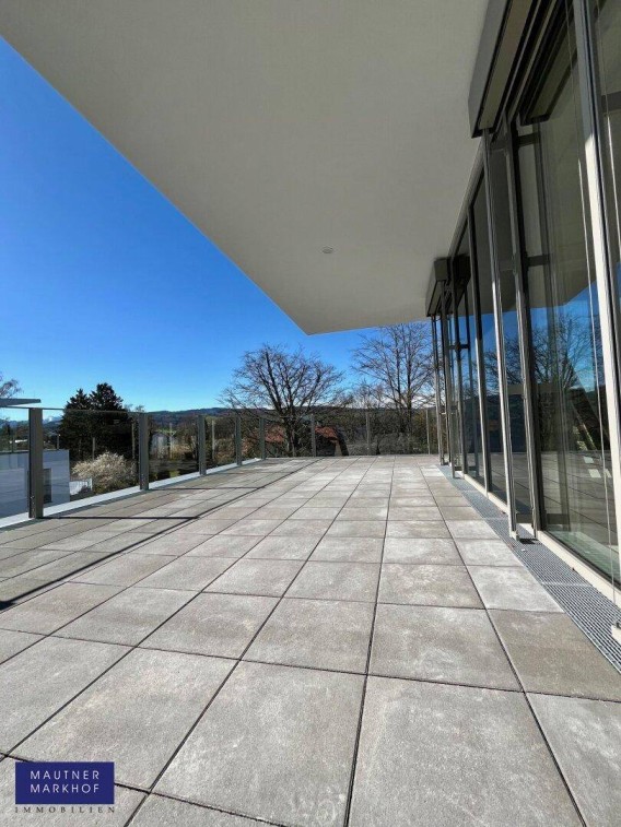 Die Wohnung wird über Fernwärme versorgt und umfasst:Vorraum zentralSchlafzimmer mit Terrassenausgang und angeschlossenem Bad, sowie SchrankraumBad 1 mit Terrassenausgang und ToiletteSchrankraumZimmer Zimmer Bad 2 mit Dusche Gästetoilette mit HandwaschbeckenWohnbereich ca. 45m² mit Bereich für offene Küche, Kaminanschluss im Wohnzimmer und mehreren Ausgängen auf die TerrasseSpeisTerrasse ca. 105m² L-förmig , teilweise überdacht, sonnig mit Fernblick an mehreren Seiten in die Bergwelt des Kellerabteil ca. 7m²TiefgaragenstellplatzBarrierefrei, Außenjalousien, bis zu 2,70m Raumhöhe, Lift, FernwärmeIn unmittelbarer Nähe befinden sich Einkaufsmöglichkeiten, Schule, Bahnhof, Busbahnhof; Golfplatz und Yachtklub am Attersee, Badeplatz am Attersee in ca. 5km Entfernung. Von Wien aus, in ca. guten 2 Stunden, je nach Verkehrsaufkommen gut erreichbar.Für weitere Fragen bzw. zur Vereinbarung eines eventuellen Besichtigungstermins, steht Ihnen gerne Herr Markus Schafroth unter [Telefonnummer entfernt] zur Verfügung.Der Vermittler ist als Doppelmakler tätig.