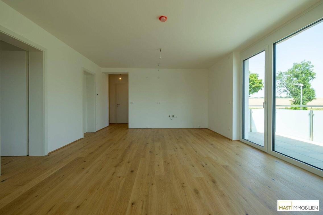 Fragen Sie gerne nach unserem Immobilienfolder an, sämtliche Wohnungen auf www.mast-immo.atInmitten der grünen Weite des Weinviertels und doch in unmittelbarer Nähe zur Stadt Korneuburg entsteht ein Wohnbauprojekt, das modernes Wohnen mit ländlicher Ruhe auf ideale Weise verbindet. In Spillern, nur wenige Fahrminuten von Wien entfernt, realisieren wir 38 hochwertige Eigentumswohnungen – perfekt für Familien, Paare und Singles, die ein Zuhause mit Lebensqualität suchen.Wohnen im Grünen – mit allem, was das Herz begehrtDie Wohnungen sind zwischen ca. 43 m² und 90 m² groß und bieten durchdachte Grundrisse, helle Räume sowie großzügige Freiflächen wie Balkone, Terrassen oder Eigengärten. Die Ausstattung ist modern, hochwertig und auf ein langfristig angenehmes Wohngefühl ausgelegt.Highlights des Projekts:38 Wohneinheiten mit 2 bis 4 Zimmern (aufgeteilt auf 2 Trakte)Großzügige Balkone, Terrassen oder GärtenRuhige, grüne Lage nahe dem Naherholungsgebiet DonauauenFußläufige Anbindung an Bahn und NahversorgungHochwertige Ausstattung & nachhaltige BauweisePKW-Stellplätze optional erhältlich (zu je 15.000,-- €)Geplante Fertigstellung: 01.10.2025PhotovoltaikanlageRaumaufteilung: