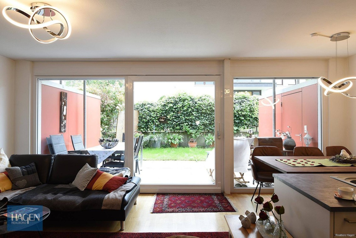 Im unteren Bereich der Wohnung finden Sie einen offenen und lichtdurchfluteten Wohnbereich, der direkt auf die schöne Terrasse führt. Von hier aus haben Sie Zugang zu Ihrem eigenen Garten, der ideal zum Entspannen oder für gemeinsame Stunden im Freien ist. Die Terrasse ist zudem mit einem praktischen Außenabstellraum ausgestattet, in dem Sie Gartenutensilien sicher verstauen können.