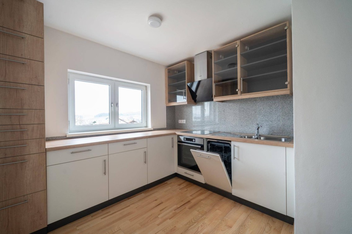 Alle Fußböden sind neu. Auf Maß gefertigte große L-Küche mit E-Geräten, Geschirrspüler.