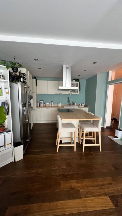 • Echtholzparkett mit ca. 3 mm Nutzschicht, neuwertig und ungeschliffen