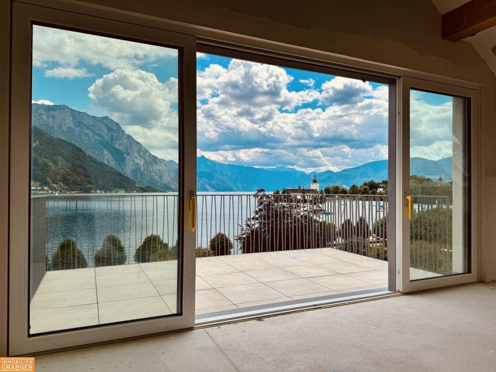 Willkommen in dieser außergewöhnlichen 3-Zimmer-Penthousewohnung, die sich in unmittelbarer Seenähe von Gmunden befindet und ihresgleichen sucht! Das Ufer des Traunsees liegt nur 50 Meter entfernt, und der unverbaubare Blick auf den See, die Schlösser Orth und das umliegende Gebirge ist schlichtweg atemberaubend. Diese Wohnung bietet nicht nur eine maximale Raumhöhe von 4,20 Metern, sondern auch einen großzügigen Wohn- und Essbereich von etwa 45 m² mit Zugang zum sonnigen Balkon – ein weiteres Highlight dieser Wohnung der Extraklasse. Zusätzlich zu den beiden Bädern und zwei Toiletten verfügt die Wohnung über zwei kuschelige Schlafzimmer.Lage: Die Lage dieses Penthouses ist absolut privilegiert. In nur 4 Minuten erreichen Sie zu Fuß das historische Zentrum von Gmunden mit seinen charmanten Geschäften, erstklassigen Restaurants, gemütlichen Cafés und weiteren Annehmlichkeiten. Doch das wahre Highlight ist die Nähe zum See, der Ihnen unzählige Freizeitmöglichkeiten bietet und zugleich eine einzigartige Kulisse für Ihr neues Zuhause darstellt.Ausstattung:DeckenkühlungGeräumiger Wohn- und Essbereich mit einer Deckenhöhe von bis zu 4,20 MeternGroßzügiger Balkon mit Blick auf den Traunsee und die Schlösser OrthBELAGSFERTIGHochwertige Materialien und exquisites Design für ein luxuriöses AmbienteBesonderheiten: Die unvergleichliche Lage dieses Penthouses, kombiniert mit der erstklassigen Lage und dem atemberaubenden Ausblick, machen es zu einem ganz besonderen Wohntraum. Der großzügige Wohnbereich mit der beeindruckenden Deckenhöhe und der sonnige Balkon bieten Ihnen ein Höchstmaß an Wohnkomfort und Lebensqualität. Erleben Sie jeden Tag das Gefühl von Luxus und Exklusivität in Ihrem eigenen Zuhause.Fazit: Diese Penthousewohnung vereint alle Elemente, die man sich für ein erstklassiges Wohnen am Traunsee wünscht: eine traumhafte Lage, einzigartige Ausblicke und großzügige Wohnflächen. Verpassen Sie nicht die Gelegenheit, dieses außergewöhnliche Angebot zu Ihrem neuen Zuhause zu machen!Für weitere Informationen oder zur Vereinbarung eines Besichtigungstermins stehen wir Ihnen gerne zur Verfügung.• Mittels Aufzug gelangen sie von der hauseigenen Tiefgarage direkt in die Wohnung.• Der Einbau einer Klimaanlage ist möglich.• Die Raumhöhe beträgt maximal 4,2 m (First). Kniestock: 1,0 m.Hinweise:• KEINE MAKLERGEBÜHREN!• Grafische Darstellungen sind symbolhaft zu verstehen und können Sonderausstattungen widerspiegeln.• Bei den "Fotos" handelt es sich um computeranimierte Symbolbilder. Der Ausblick ins Freie muss nicht mit der jeweiligen Wohnung übereinstimmen.• Druckfehler, Änderungen und Irrtümer vorbehalten.• Darstellungen auf Plänen sind nicht Leistungsbestandteil. Ausnahme BAD und WC.