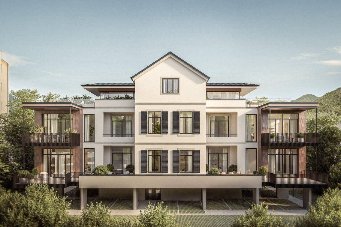 Im Inneren der Villa werden Sie von großzügigen, lichtdurchfluteten Räumen empfangen, die eine perfekte Balance zwischen Tradition und modernem Komfort bieten. Hohe Decken, kunstvolle Verzierungen und edle Materialien schaffen eine Atmosphäre von königlichem Wohnen. Die Wohnungen werden mit hochwertigem Fischgrätparkett ausgestattet. Eine Auswahl an drei verschiedenen Holzvarianten lässt Sie Ihren Wohnraum nach Ihren individuellen Wünschen verwirklichen.Altbau: Prunkvolle hohe Räume bieten ein eindrucksvolles Ambiente in den Wohnräumen. Die großen Fensterfronten mit Blick ins Grüne, laden zum Träumen und Entspannen ein.Neubau Zeitloses minimalistisches Design erwartet Sie in diesen Wohnungen. Raumhohe Verglasungen mit Bick ins Grüne, lassen den Innenraum mit dem Außenraum verschmelzen und bilden eine Oase zum Wohlfühlen.Jede Wohnung verfügt über ein luxuriöses Badezimmer, das sich wie ein persönliches Spa anfühlt. Hochwertige Materialien und Ausstattungen bieten Ihnen höchsten Komfort und Wohlfühlcharakter. Ob klassisch elegant, modern oder minimalistisch. Die drei Ausstattungvarianten der Badezimmer lassen keine Wünsche offen und laden Sie jeden Tag aufs Neue zum Entspannen ein. Die großzügigen Balkone und Terrassen bieten einen atemberaubenden Blick auf die umliegende Natur und schaffen eine idyllische Umgebung, um die Schönheit der Jahreszeiten zu genießen.