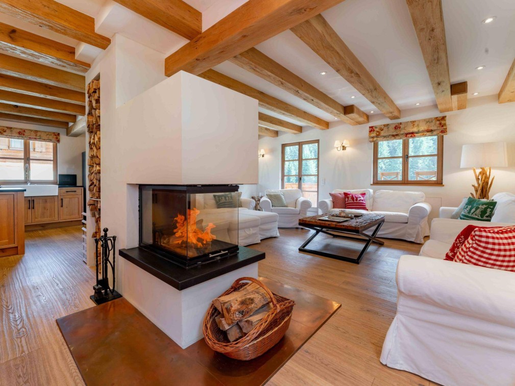 Das Chalet beeindruckt durch hochwertige Einbauküchen, maßgefertigte Möbel und einen offenen Kamin, der an kalten Winterabenden für wohlige Wärme sorgt. Die verschiedenen Terrassen und Balkone sowie der großzügige Garten machen dieses Chalet zu einem idealen Rückzugsort in den Alpen.
