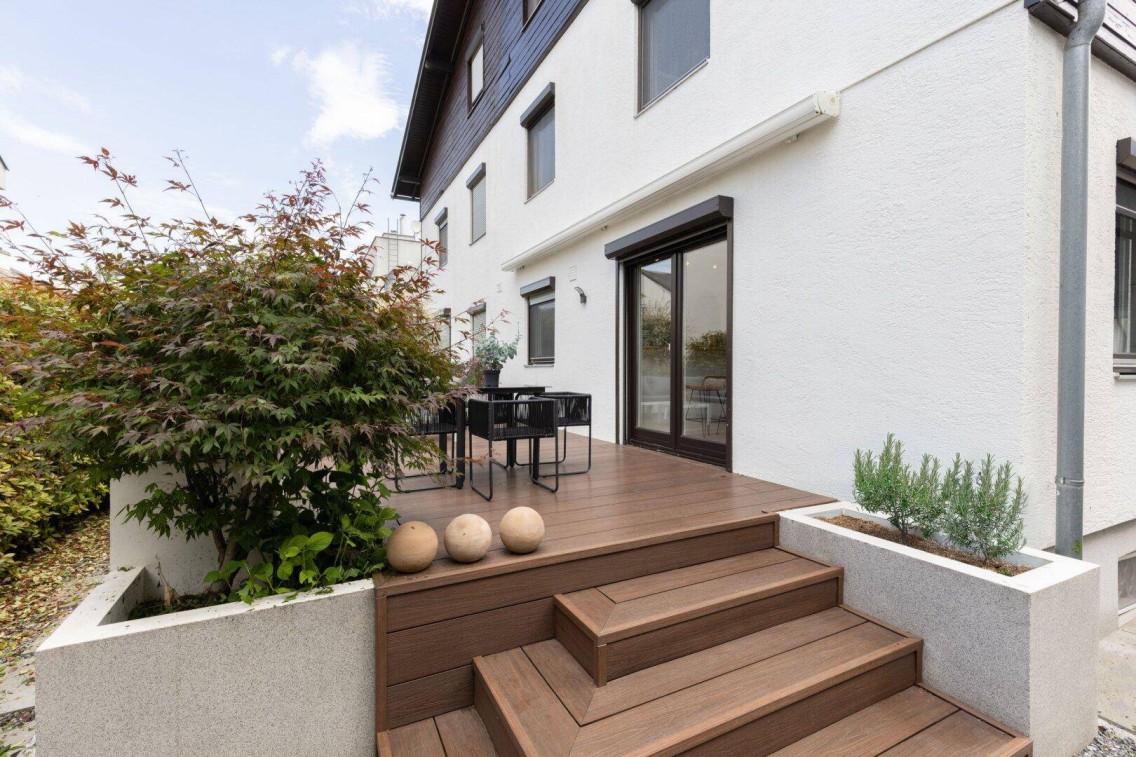 Zum Verkauf gelangt eine wunderschöne Doppelhaushälfte mit 120 m² Wohnfläche in herrlicher und ruhiger Lage beim Mühlwasser. Die Liegenschaft liegt in einer sehr gepflegten, ruhigen und familiären Wohnhausanlage, welche im Jahr 1988 erreichtet wurde. Das dreistöckige Haus selbst wurde erst kürzlich liebevoll renoviert.Was die zukünftigen Eigentümer erwartet:120 m² Wohnfläche, 4 Zimmer auf 3 Etagen2 Bäder und Toiletten 45 m² Keller mit eigener "Waschküche"geschmackvolle Einbauküche samt Miele Geräten45 m² Terrasse mit Markise 2 PKW Stellplätze AlarmanlageBalkon im Dachgeschossviel Stauraum dank hochwertiger Maßmöbel in Hochglanz Optikdimmbare Lichtquellen im gesamten HausDIE AUFTEILUNG: Erdgeschoss:Über eine gepflegte Zufahrtsstraße in der Mühlwasserpromenade gelangt man mit dem PKW direkt in das zukünftige Zuhause und den zwei zugehörigen Stellplätzen. Vor der Liegenschaft sind sehr hochwertige Pflanztröge platziert, welche liebevoll bepflanzt sind und einen Vorgeschmack auf weiteres hochwertiges Design geben.Der Eingangsbereich ist praktisch überdacht und die Haustüre über einige Treppen zu erreichen. Nach dem Betreten befindet man sich in einem kompakten und hellen Vorraum. Die hier liegende Gästetoilette ist mit einem kleinen Handwaschbecken und einem Fenster aus uneinsichtigem Milchglas ausgestattet.Um Lebensmittelvorräte und diverse Utensilien des Haushalts praktisch zu verstauen, steht im Erdgeschoss ein rund 1,50 m² großer Abstellraum zur Verfügung.Das Herzstück, der offen gestaltete Wohn- und Essbereich, bietet auf knapp 32 m² idealen Platz, um eine großzügige Sitzgruppe und einen ausladenden Essbereich einzurichten. Die klassische Küche ist vom Wohnbereich separiert, aber dennoch über eine große Arbeitsfläche samt Theke offen und gesellig gestaltet. Die Markengeräte der Firma Miele runden das Wohlfühlen beim Kochen komfortabel ab.Vom Wohnbereich erstreckt sich der Blick auf die vorgelagerte und wunderschön gestaltete Terrasse. Auf rund 45 m² kann man die warme Jahreszeit im Freien herrlich genießen. Hervorzuheben ist die geschmackvolle Umrahmung in Form von tiefen weißen Pflanztrögen, welche bereits schön bepflanzt sind und mit einer automatischen Bewässerung und Lichtspots versehen ist. Eine verschließbare Gartenhütte steht den neuen Eigentümern ebenfalls zur Verfügung.Die Terrasse ist aufgrund Ihrer Beschaffenheit sehr pflegeleicht, viel Grün und das Mühlwasser vor der eigenen Haustüre ersetzen den Garten und machen vor allem keine zusätzliche Arbeit.1.Obergeschoss:Über eine schöne Holztreppe gelangt man in das erste Obergeschoss - hier liegen zwei Schlafzimmer sowie ein Badezimmer.Der Raum gegenüber des Treppenaufgangs weist eine angenehme Größe von knapp 13 m² auf, ist quadratisch dimensioniert und bietet sich ideal als Kinder- oder Gästezimmer an. Das Zimmer nebenan bietet rund 22 m² und hochwertige Einbauten nach Maß. Es hat einen unkonventionellen Schnitt und ist ideal als Jugendzimmer mit Schreibtisch und begehbarem Schrankraum zu nutzen.Das 6,34 m² große Tageslicht-Badezimmer auf dieser Wohnebene ist mit einer Badewanne, einer Toilette, einer Waschtisch-Kombination samt Spiegel und einem Heizkörper ausgestattet. Selbst hier findet man viel Stauraum für Kosmetika, Reinigungsmittel usw.2.Obergeschoss/Dachgeschoss:Das Dachgeschoss des Hauses wurde bisher als Hauptschlafzimmer genutzt und weist eine sensationelle Größe von über 31 m² auf. Erneut stehen den neuen Eigentümern viel Stauraum und moderner Komfort zur Verfügung. Ein großes Doppelbett, ein Flat-TV samt Boxen und ein entzückender Balkon mit knapp 4 m² runden das Angebot ab.Ein Badezimmer im Rohzustand mit sämtlichen Anschlüssen ist auf dieser Wohnebene vorbereitet und kann ganz nach individuellem Geschmack geplant und gestaltet werden.Keller:Der gut nutzbare Keller hat eine Größe von über 41 m² und ist in Waschküche/Technikraum (Therme/Wasserspeicher/Waschmaschinen-Anschluss) und Kellerfläche unterteilt. Der Keller ist fast zur Gänze mit deckenhohen Schränken verbaut und bietet somit zusätzlichen Möglichkeit sämtliche Utensilien des Haushalts zu verstauen.Zusammengefasst ein Traumhaus mit vielen Raffinessen, enormem Stauraum für Familien und Paare. Einzigartiges Design, hochwertige Ausstattung, kombiniert mit absolutem Wohlfühl-Charakter und ganz viel Charme in bester Lage am Mühlwasser.Die Liegenschaft wird inklusive sämtlicher fixer Maßeinbauten verkauft!LAGE UND INFRASTRUKTUR:Die Immobilie befindet sich in der Mühlwasserpromenade im 22. Wiener Gemeindebezirk Donaustadt, einem der grünsten und familienfreundlichsten Bezirke Wiens. Die Lage zeichnet sich durch ihre unmittelbare Nähe zum Oberen Mühlwasser aus, einem idyllischen Naturjuwel, das zu Spaziergängen, Radtouren und Wassersportaktivitäten wie Schwimmen oder Stand-Up-Paddling einlädt .Die Umgebung bietet eine ausgezeichnete Infrastruktur:Öffentliche Verkehrsanbindung: Die Buslinie 93A hält an der nahegelegenen Station “An der Bien” und bietet Verbindungen zur U2-Station Donaustadtbrücke sowie zur U1-Station Kagran . Weitere Buslinien wie 95A und N91 sind ebenfalls in der Nähe verfügbar. Einkaufsmöglichkeiten: In einem Umkreis von etwa 1 km befinden sich Supermärkte wie Spar und Billa, eine Bäckerei sowie diverse Gastronomiebetriebe, darunter Cafés, Pizzerien und Restaurants . Bildungseinrichtungen: Kindergärten und Schulen sind in der Umgebung vorhanden und bequem erreichbar, was die Lage besonders für Familien attraktiv macht .Gesundheitsversorgung: Ärzte, Apotheken und Kliniken befinden sich in einem Umkreis von 1 bis 2 km, was eine schnelle medizinische Versorgung gewährleistet .Freizeit und Erholung: Neben dem Oberen Mühlwasser laden der nahegelegene Nationalpark Donau-Auen, die Lobau und die Donauinsel zu vielfältigen Freizeitaktivitäten in der Natur ein . Die Kombination aus naturnaher Lage und guter Anbindung an das öffentl