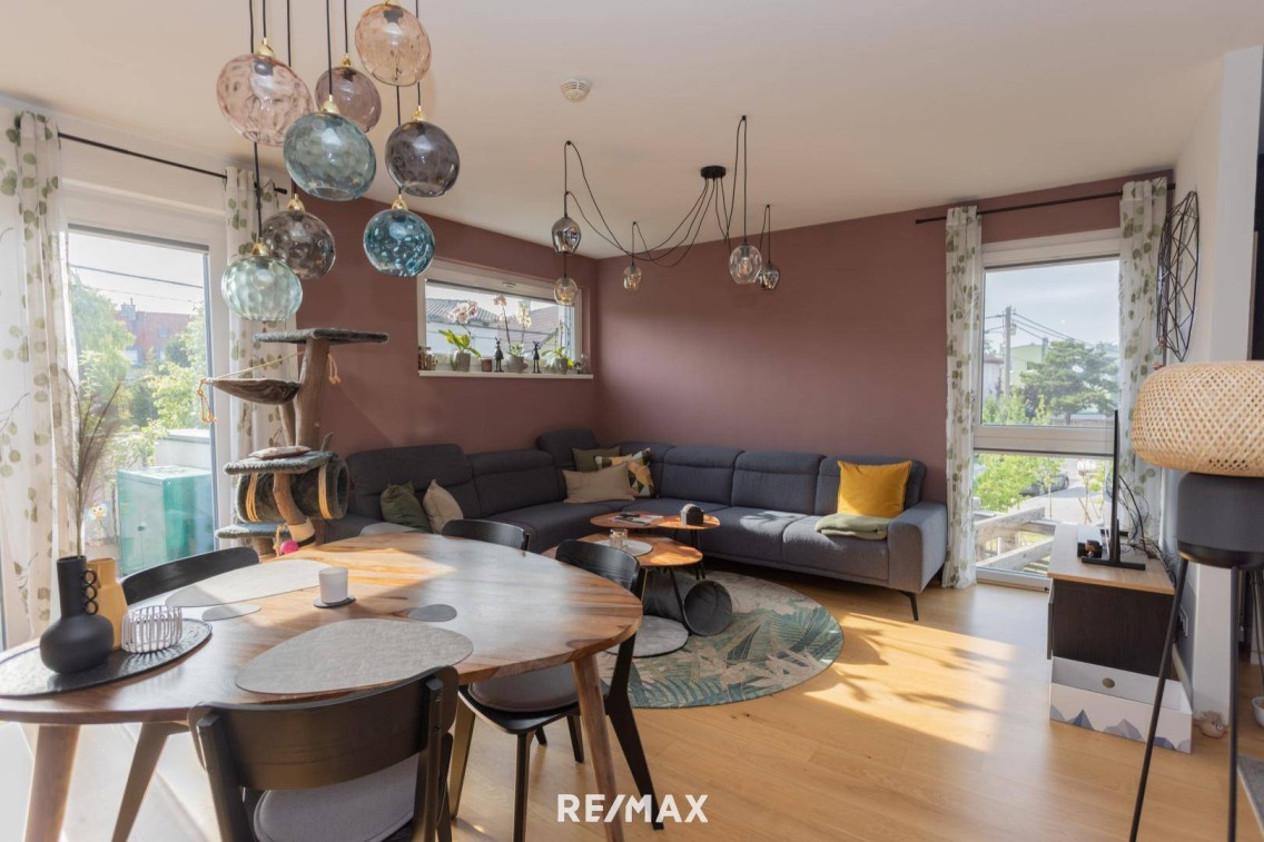 Die Anlage mit 24 Eigentumswohnungen und 6 Reihenhäusern sowie 15 Tiefgaragenplätzen wurde im Jahr 2019 fertiggestellt. Die Wohnung befindet sich im ersten Obergeschoß mit Westorientierung, besteht aus einem Vorzimmer, Wohnküche mit ca. 29 m² und Zugang zu einem ca. 6 m²-großen Balkon, WC, Bad (Wanne, Waschtisch und Waschmaschinenanschluss und Fenster) sowie drei weiteren Zimmern mit ca. 15, 13 und 11,5 m².