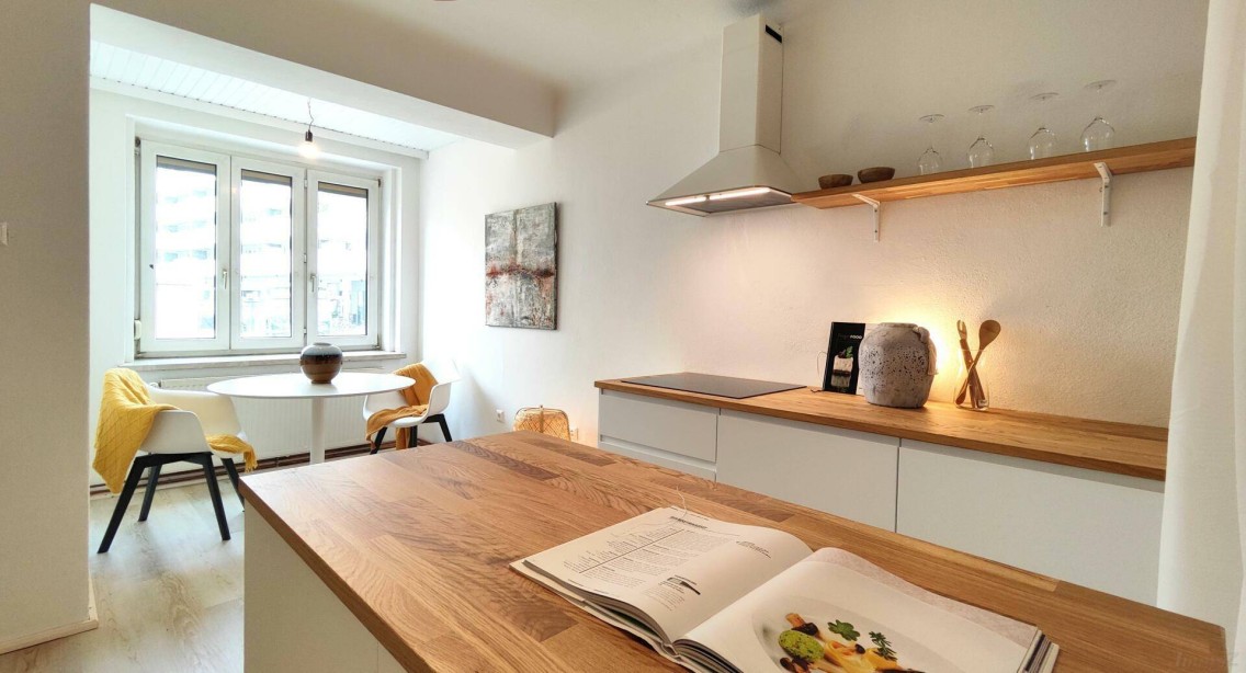 Die hübsche, moderne Küche ist der perfekte Ort, um Ihre Kochkünste zu entfalten und gesellige Abende mit Freunden zu verbringen.